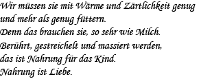 • wirkt fördernd auf die Mutter/Eltern-Kindbindung